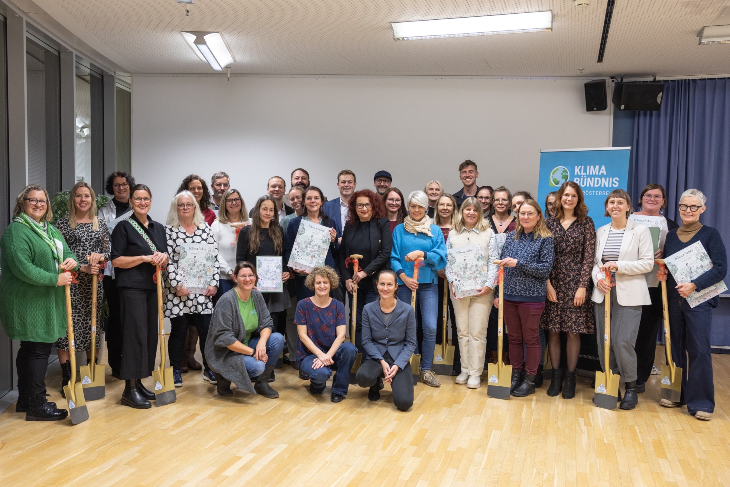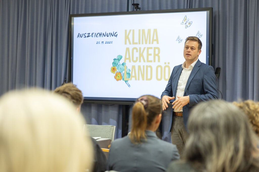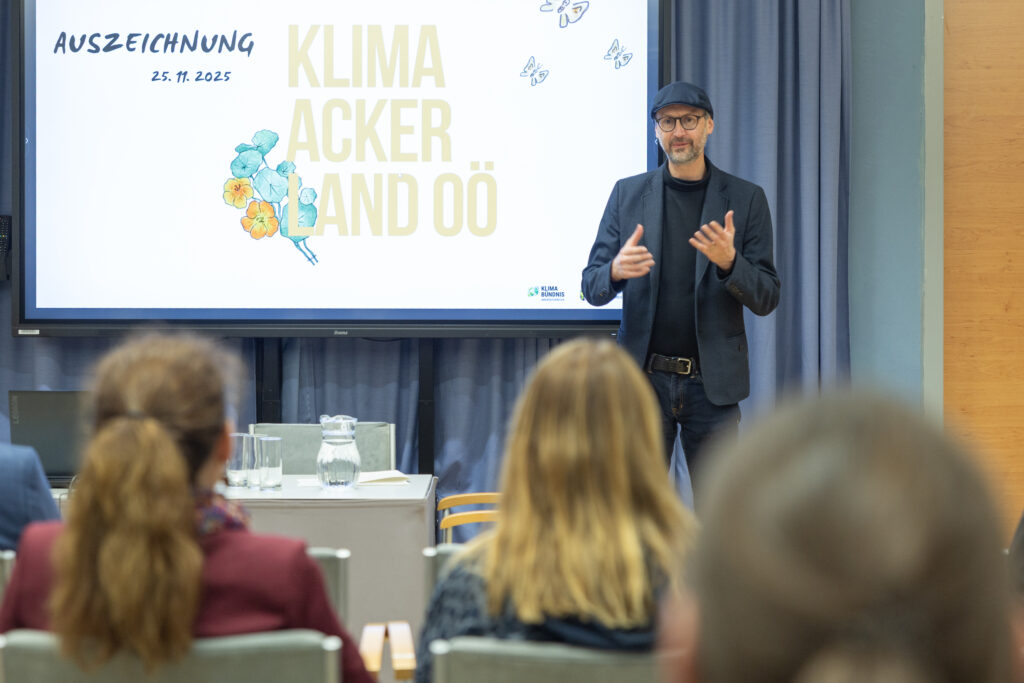 Als Höhepunkt des Nachmittags wurden alle KlimaAcker-Bildungseinrichtungen 2025 ausgezeichnet. Umwelt- und Klima-Landesrat Stefan Kaineder sowie Klimabündnis OÖ-Geschäftsführer Norbert Rainer gratulierten den Kindergärten und Schulen persönlich und überreichten KlimaAcker-Tafeln, Urkunden sowie einen Spaten – als Symbol für viele weitere Pflanzlöcher und nachhaltige Gartenprojekte im kommenden Jahr.