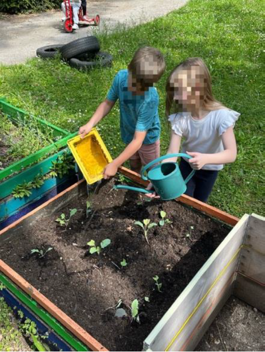 Zum Abschluss pflanzten die Kinder gemeinsam Kohlrabipflanzen ein. Die Pflege der Pflanzen – insbesondere das tägliche Gießen – wurde bewusst in die Verantwortung der Kinder gelegt. So wurde aus dem Projekt nicht nur eine Entdeckungsreise in die Welt des Bodens, sondern auch eine Übung in Achtsamkeit, Verantwortung und nachhaltigem Handeln.