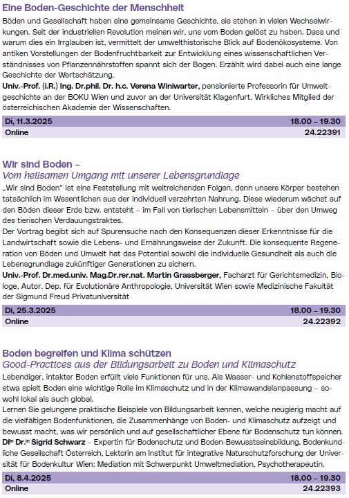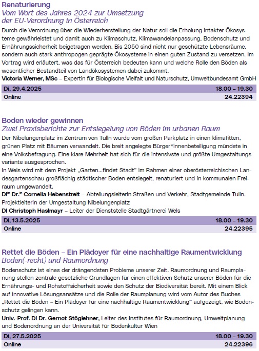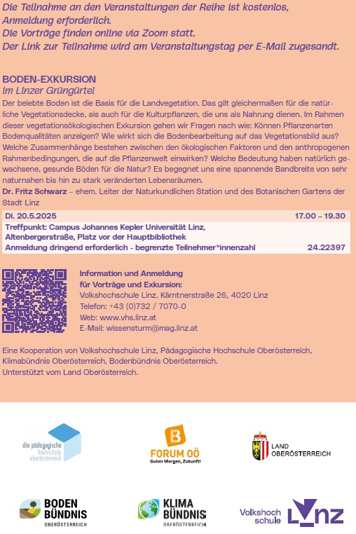 Vortragsreihe // Ringvorlesung der VHS Linz in Kooperation mit PH OÖ, Klimabündnis OÖ und Bodenbündnis OÖ